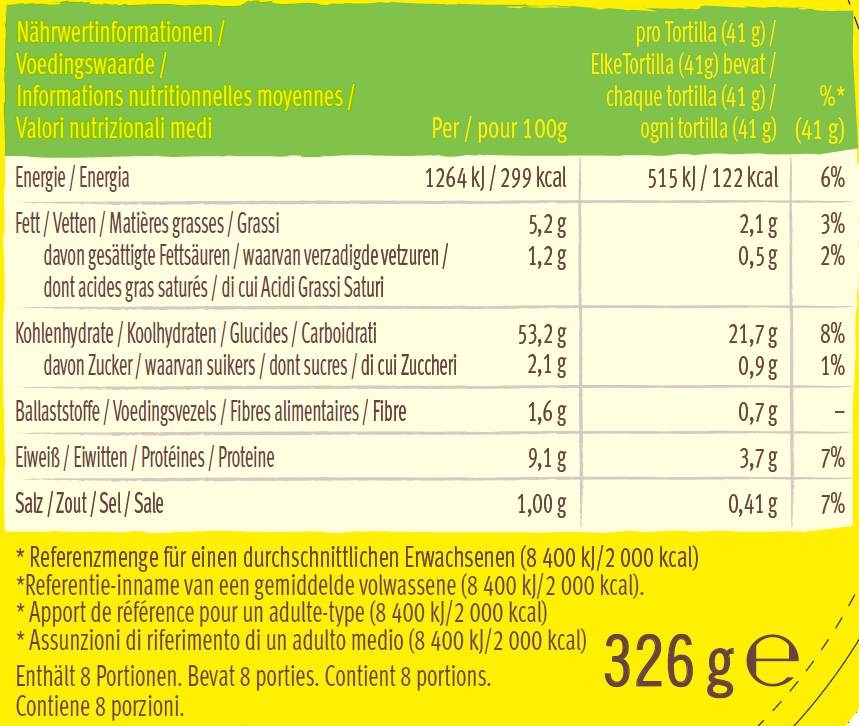 Mūsu mīkstie miltu tortilijas vrapi ir veidoti (saspiežot) no svaigām mīklas bumbiņām un cepti līdz brīdim, kad tie ir patīkami un grauzdēti. Vieglas un gaisīgas - šīs tortilijas pilnveidos jebkuru meksikāņu maltīti, sākot ar čurkstošām fajitām līdz pat pikantiem burito.