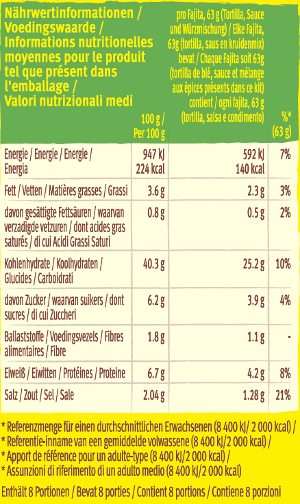 Visi “Old El Paso” produkti tiek pilnveidoti laika gaitā. Tāpēc mēs iesakām pirms produkta iegādes, izlasīt produkta sastāvdaļu sarakstu, kas atrodas uz produkta iepakojuma.